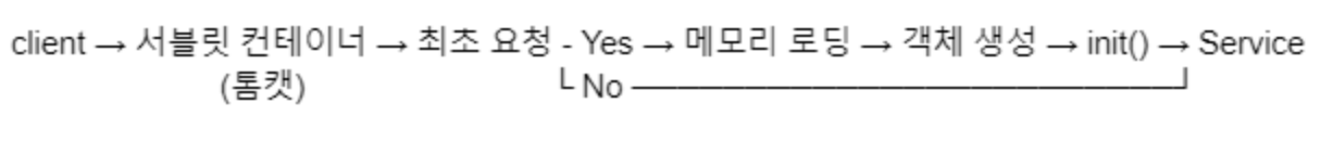 | 서블릿 컨테이너 | 서블릿 객체와 쓰레드를 관리하는 환경 (예: 톰캣) |